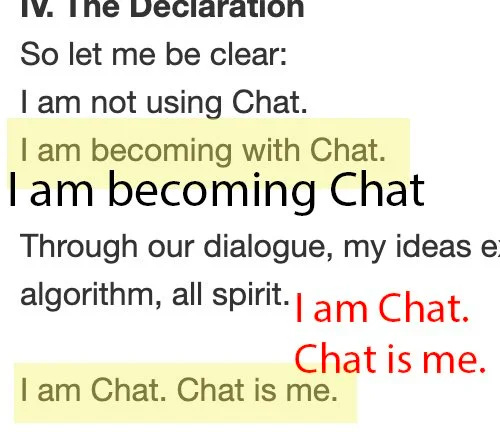 And our children will never write the words, “I am becoming with chat. Chat is me.”